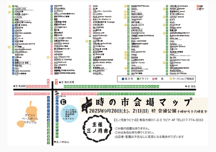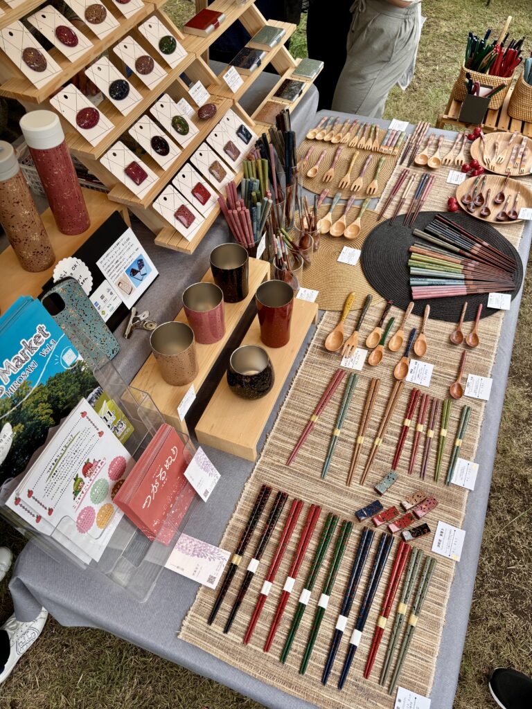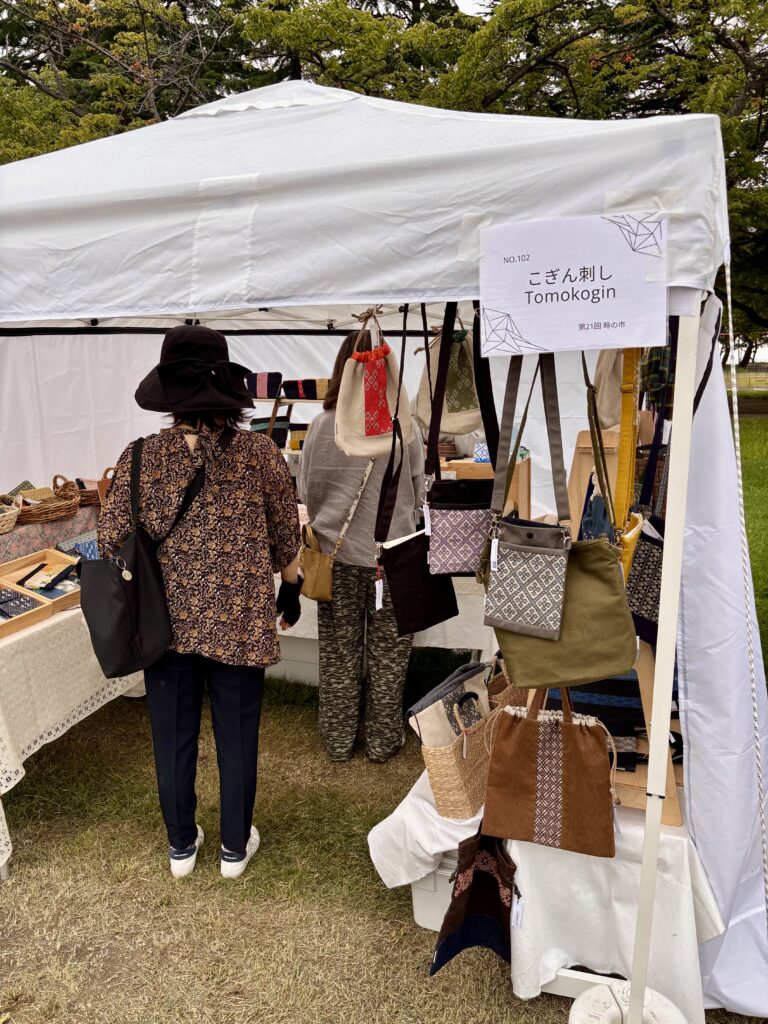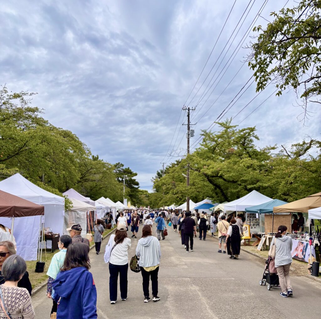 出店数は約90店舗で、クラフトの店が約50、蚤の市の店が約20、飲食の店が約20という構成で、クラフトのお店が中心でした。アクセサリーや小物、こぎん刺しのお店が多かったですね。それ以外にもいろんなお店があって、楽しいイベントでした。