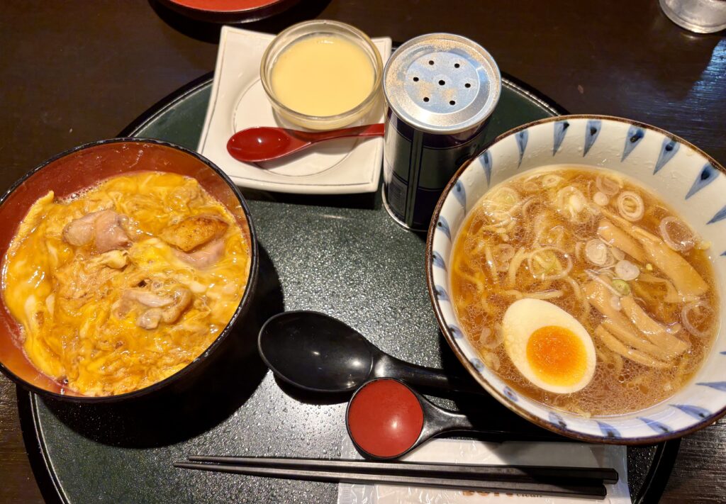 カウンターに「出川哲朗の充電させてもらえませんか?」のシールが飾ってありました。オーダーはもちろん親子丼のセット。比内地鶏のお肉と卵は素晴らしく美味しかったです。
