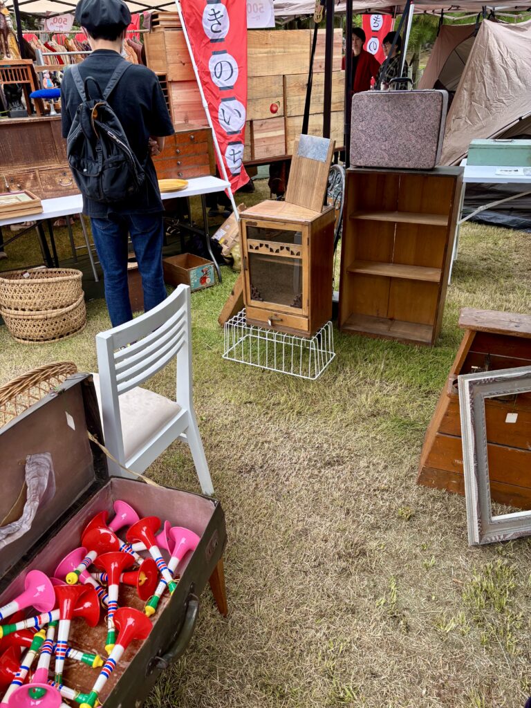 9月20日(土)と22日(日)の二日間が『時の市』の開催期間です。天気予報では、20日(土)の午後から大雨とのことだったので、20日の午前中が勝負です。スタートの10時に合わせて会場に行って、大急ぎで会場を巡りました。90店舗ほどあるとのことでしたが、駐車場からすぐに会場にアクセスできて、十時型の通り沿いにお店が並ぶシンプルな構成だったので、迷うことなく見て回れました。