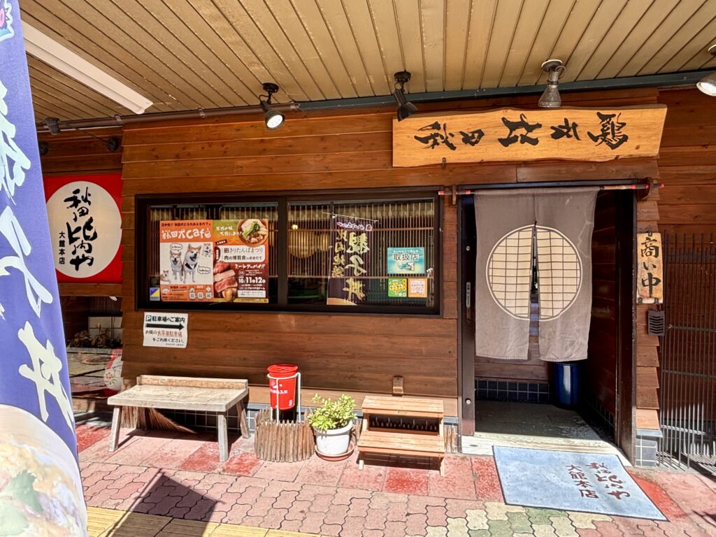 「曲げわっぱ」で肩透かしを食らいましたが、気を取り直して大館のランチで一番人気の「秋田比内や 大館本店」に行きました。街中は閑散としているにも関わらず、どこから湧いてくるのか、このお店にはお昼どきに大勢のお客さんが訪れてきました。さすが人気店です。